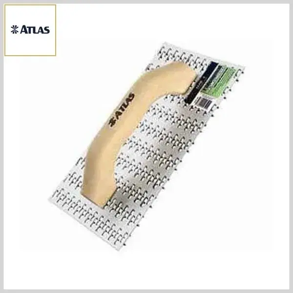DESEMPENADEIRA RASPADORA ATLAS AT115 possui corpo metálico em aço com dentes pontiagudos (em toda a sua base) e cabo de madeira com 2 hastes. Disponível no tamanho 250x140x80mm (comprimento x largura x altura), é indicada para a remoção de resíduos e acabamentos decorativos (texturas) para a preparação de superfícies.
