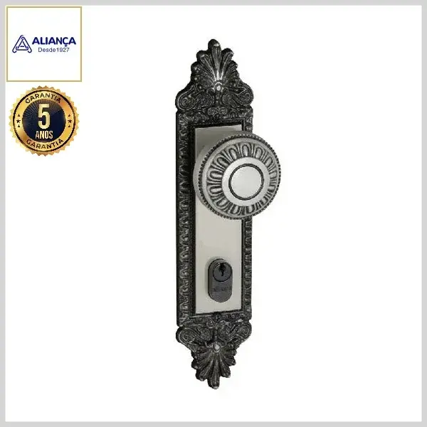 Fechadura Externa Colonial 3600/104 Broca55mm Chave Simples c/Maçaneta c/Espelho Zamac - Latão Oxidado - Aliança - Ref:6732