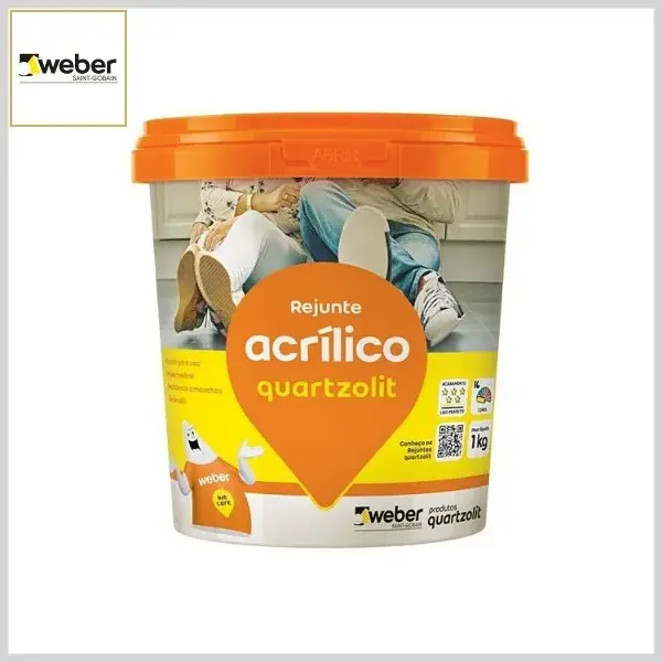 Rejunte acrílico Quartzolit é um produto monocomponente colorido pronto para o uso, destinado ao rejuntamento de cerâmicas, porcelanatos e revestimentos especiais em áreas internas e externas, exceto piscinas e fachadas. Por ser resistente à manchas e possuir propriedades anti-mofo, é especialmente indicado para o rejuntamento de revestimentos em cozinhas e banheiros.