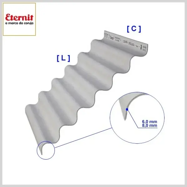 Telha de Fibrocimento Ondulada (Largura Útil 1050 mm) - 6,0 mm x 1100[L] mm x 2,44[C] mt - Eternit - Ref:1501