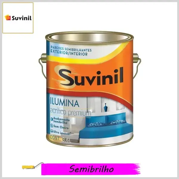 Suvinil Acrílico Ilumina Premium Semibrilho é uma tinta de alta performance, de fácil aplicação, baixo respingamento, ótima cobertura e resistência às intempéries, com excelente acabamento. Proporciona muito menos sujeira e sem cheiro após três horas após a aplicação.
