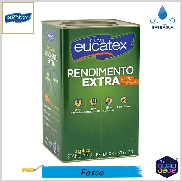 A Eucatex acrílico Rendimento Extra é uma tinta de alta performance, indicada para quem deseja melhor desempenho na aplicação, tanto em áreas externas como internas, aderindo a diferentes superfícies de alvenaria.