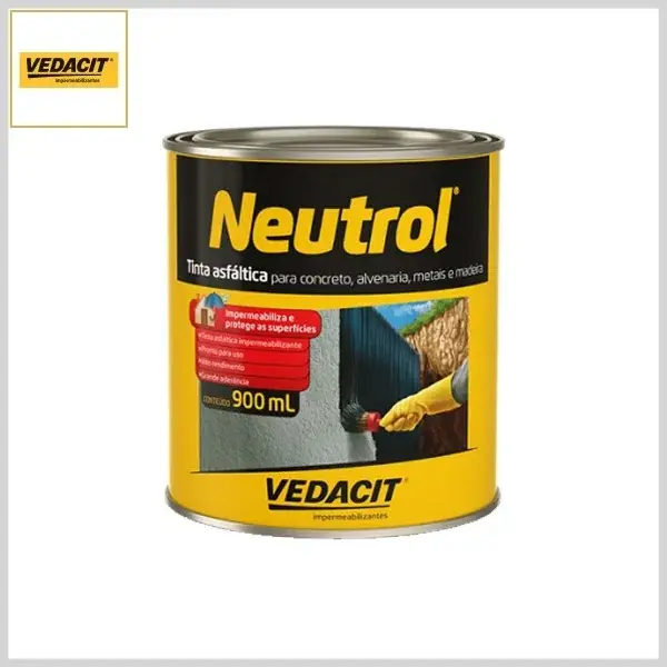 Neutrol é uma tinta asfáltica de grande aderência e alta resistência química que forma uma película impermeável que protege estruturas de concreto e alvenarias revestidas com argamassas em contato com solos sujeitos a umidades e aos meios agressivos. Após a secagem, não deixa cheiro e nem gosto na água e nos alimentos.