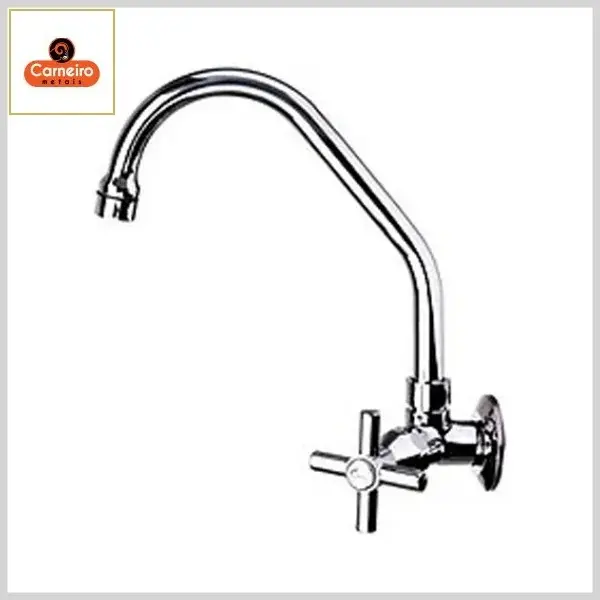Torneira de Cozinha 1166 C37 Texel Parede Bica Alta Móvel Mvs Cromado - Arejador Fixo, Volante Metal - Carneiro Metais - Ref:13656