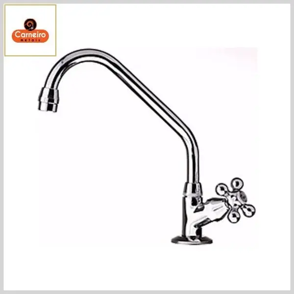 Torneira de Cozinha 2020 C32 Romney Mesa Bica Alta Móvel Mvs Cromado - Arejador Fixo, Volante Metal - Carneiro Metais - Ref:13696