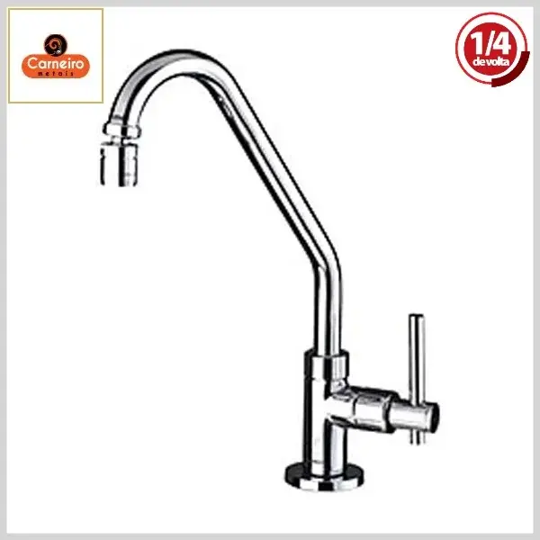 Torneira de Cozinha 2024 C61 Somalis Mesa Bica Alta Móvel 1/4Volta Cromado - Arejador Móvel, Volante Metal - Carneiro Metais - Ref:13700