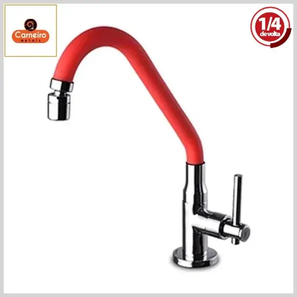 Torneira de Cozinha 4024 C61 Collor Mesa Bica Alta Móvel 1/4Volta Red/Cromado - Arejador Móvel, Volante Metal - Carneiro Metais - Ref:13339
