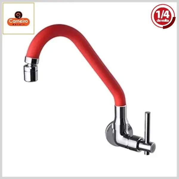 Torneira de Cozinha 4169 C61 Collor Parede Bica Alta Móvel 1/4Volta Red/Cromado - Arejador Móvel, Volante Metal - Carneiro Metais - Ref:9996