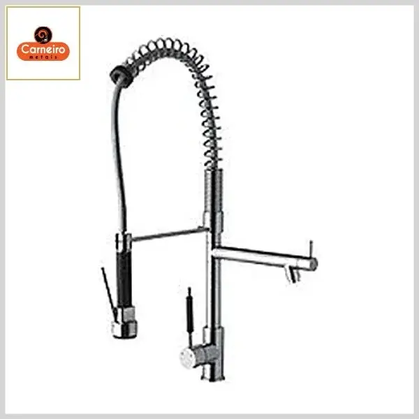 Torneira Monocomando Cozinha 1208 Gourmet Mesa Cromado - Bica Flexível, Volante Metal - Carneiro Metais - Ref:13676