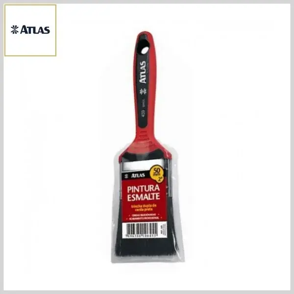 TRINCHA ATLAS 459 é fabricada em 8 tamanhos. Com dupla espessura e cerdas sintéticas pretas longas, proporcionam boa capacidade de pintura e de retenção de tinta. É indicada para pinturas com tintas à base de óleo e esmaltes.