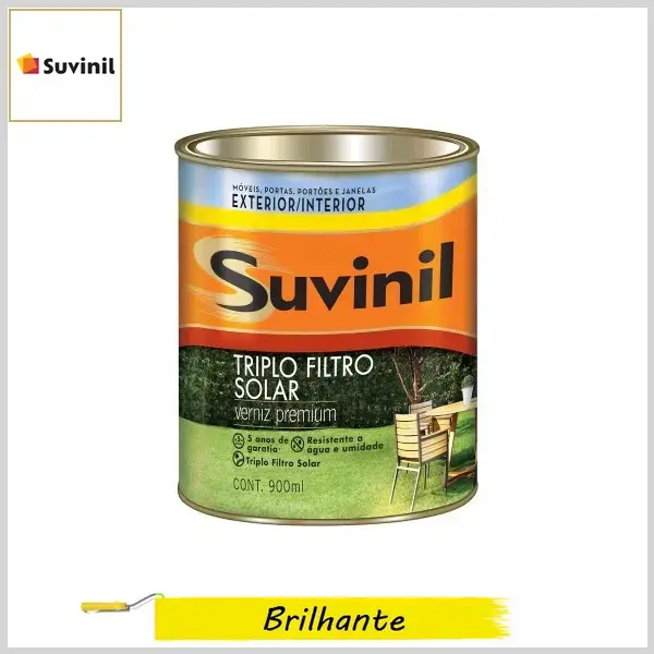 Suvinil Verniz Triplo Filtro Solar é um produto de fácil aplicação, bom alastramento, boa aderência, secagem rápida. Elaborado com três filtros solares, proporciona à madeira excelente resistência ao intemperismo natural e aos raios ultravioletas.